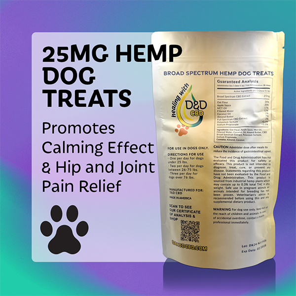 We’ve been giving our 13-year-old dog, Brody, the D&D CBD Dog Treats, and they’ve been a game-changer. They really help with his anxiety, especially during thunderstorms, and I’ve noticed he’s moving around more easily thanks to the relief from his joint pain. It’s such a relief to see him feeling better and more relaxed. Highly recommend these treats for older dogs or any pup dealing with similar issues!